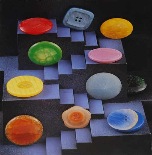 Here's how, in between the years 70s and 80s, the first imitations of horn and mother of pearl are born, in addition to other materials absolutely new and highly successful, such as CORNOVA, which are immediately requested also by some important button factories, especially from abroad.